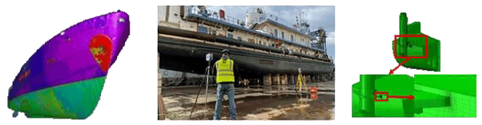 Example of niche-ship scanning 3D Data analysis in providing precision Finite Element Analysis Data, enabling super fine Engineering data and input analysis for better and more efficient asset management.